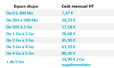 Certains de nos modules propose le stockage de documents, l'espace utilisé pour ce stockage est à prévoir en plus de l'abonnement.